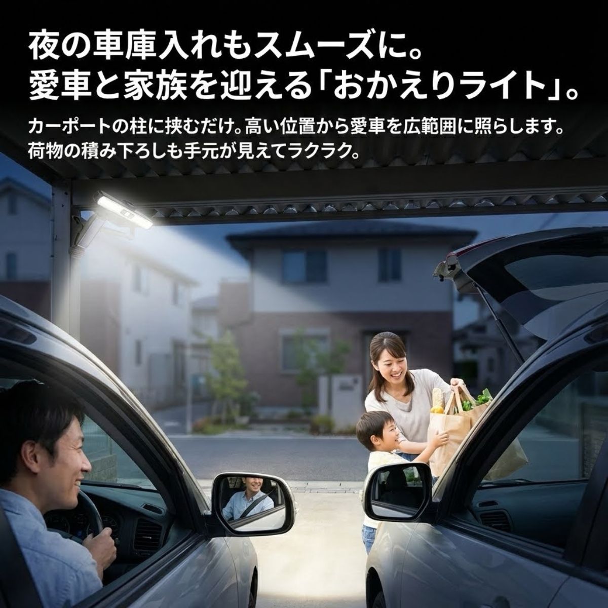 このクリップ式ソーラーライトは、ガレージやマイホームを持つ方に最適です。工具不要でクリップではさむだけでどこでも簡単に設置できます。
