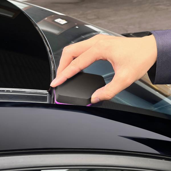 ・ガラスの角やバイザーの隙間・コンシールドワイパーを使用した車両の隙間にも届き施工ができます。
