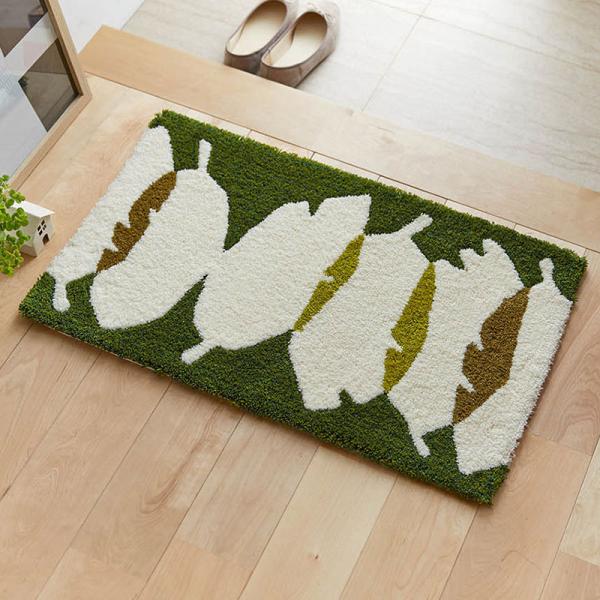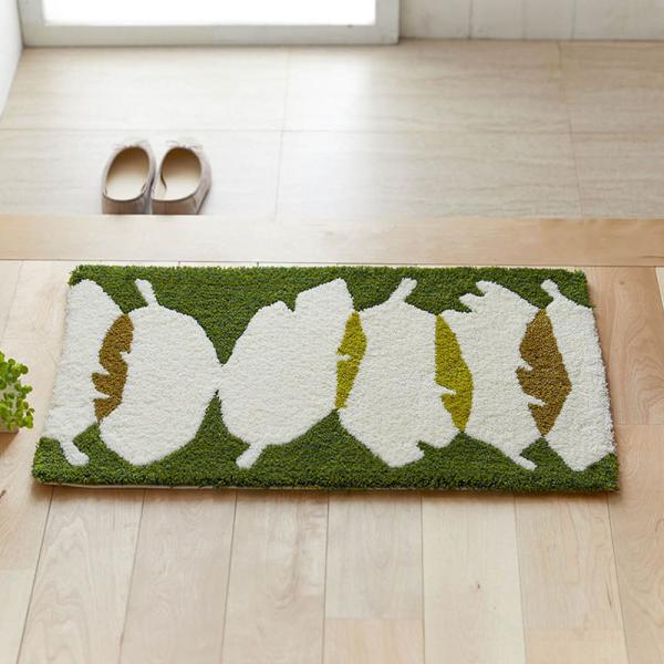 落ち着いたカラーリングの北欧デザイン!日本製北欧デザイン玄関マット45×75cm<Waiha - ワイハ オリーブ>