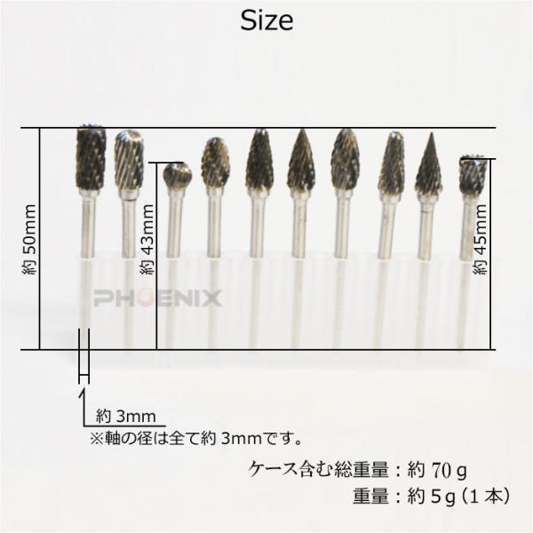 カスタムライフ ★★★★★ 5.0(1,380件) 送料無料 送料無料 CL3155 タングステンバー リューター ビット セット 3mm軸 10本セット ケース付き 超硬ビット ルータービット CL3155 タングステンバー リューター ビット セット 3mm軸 10本セット ケース付き 超硬ビット ルータービット■商品内容:タングステンバーx10■サイズ:全長約40〜50mm、ヘッド直径:6mm、シャンク径:3mm■材質:タングステン鋼●研削、バリ取り、面取りを始め、ホビー用にも使用できます。 カスタムライフ 人気ランキング もっと見る カスタムライフ 商品一覧 もっと見る