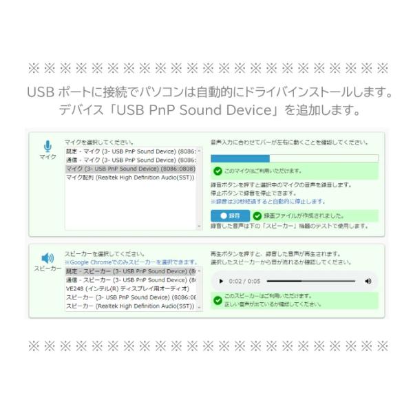 デバイスは「USB PnP Sound Device」が自動で追加されます