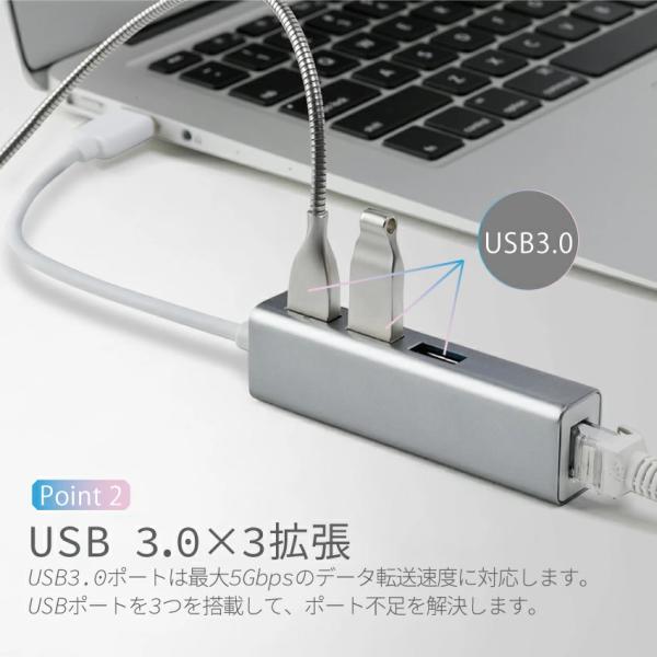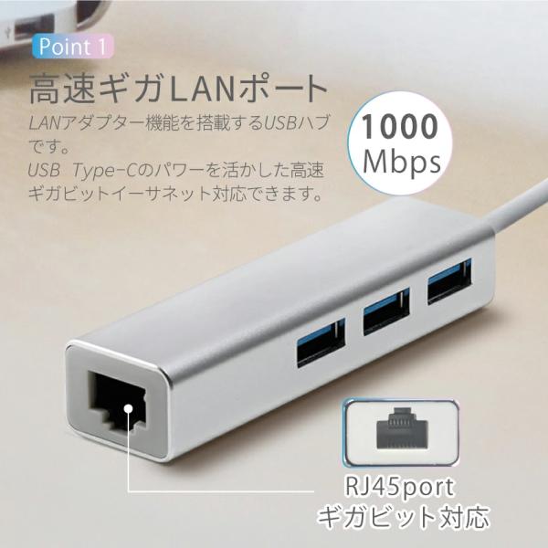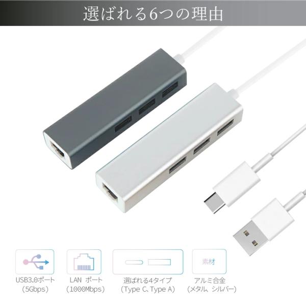 USBハブ 3.0 3ポート 4in1 USB拡張 Type-A Type-C ドッキングハブ ギガビットイーサ対応 軽量 高速 Cybernet
