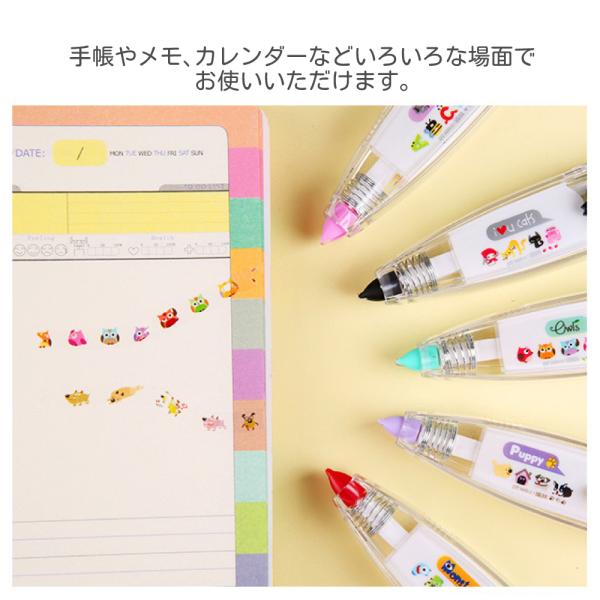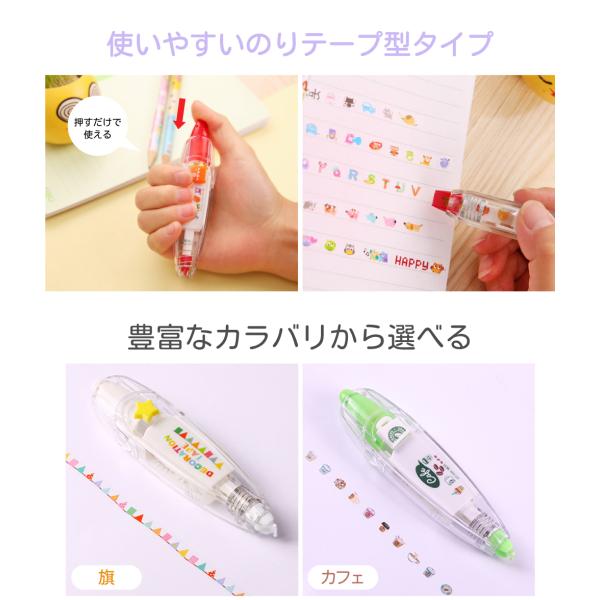 デコレーション テープ スタンプ ローラー 幅6mm カラフル かわいい 猫 旗 カフェ みつばち ハート アルファベット マステ デコ シール Cybernet