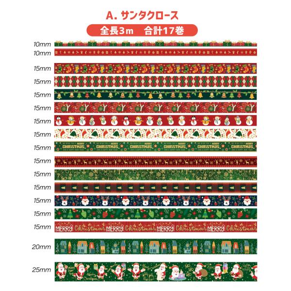 数量限定 全2種 17巻セット 18巻セット クリスマス マステ Xmas かわいい マスキングテープ デコレーションシール Cybernet