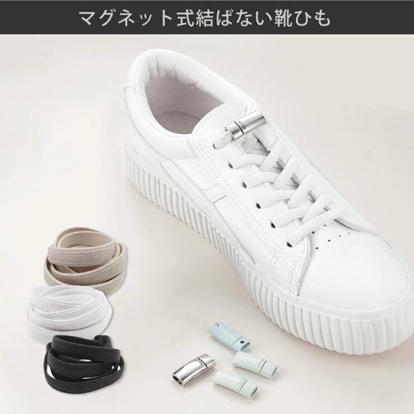 結ばない靴紐 マグネットバックル式 幅6mm 靴紐 くつひも 平紐 2本1組 3色 長さ120cm スニーカー 通勤 通学 通園 散歩 ウォーキング Cyberplugs