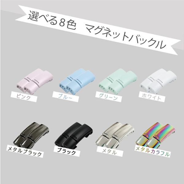 バックルの色:ピンク、ブルー、グリーン、ホワイト、ブラック、メタルブラック、メタル、メタルカラフル