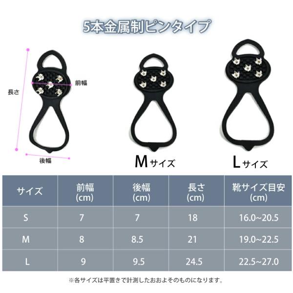 滑らない 滑り止め 雪上 雪道 スノー スパイク 靴 靴底 ヒール アイゼン 簡単装着 取り付け型 5ピン 男女兼用
