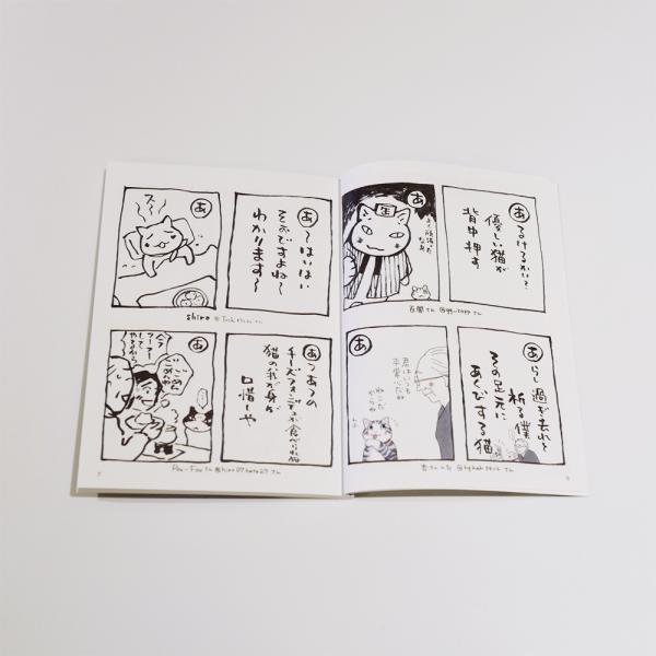 壱には、カルタ本を読んでいる痔猫一家の描きおろし漫画と夜廻り猫カルタを始めた経緯、