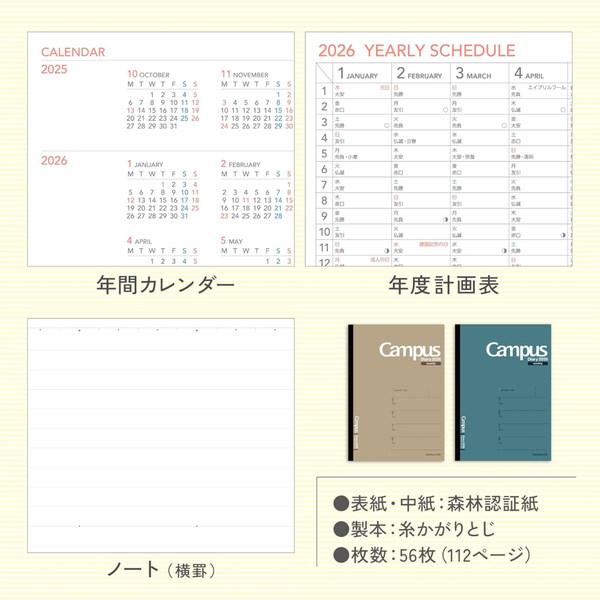 【編集内容】 年間カレンダー・週間予定(見開き1週間+メモ)・年度計画表・横罫(28行)