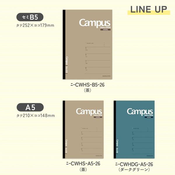 コクヨ 2026年 キャンパスダイアリー ベーシックタイプ ホリゾンタルレフト ウィークリー A5 茶 [01] 〔メール便対象〕