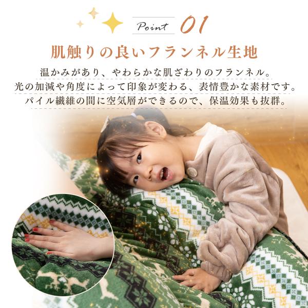 ●両面は柔らかく毛抜けないフランネル高密度素材をか採用しており、きめ細かい繊維みとふんわりした触り心地が布団の秘密です。