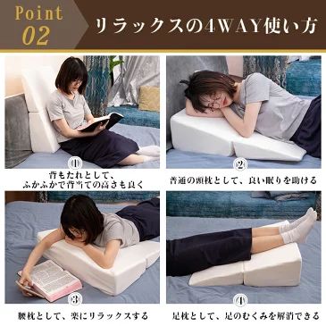 ● 仰向きで寝るのが大変な方 ● 横向きで寝る方●等高さで寝る方 ●足のむくみを解消に足を高くて寝る方 ●背もたれクッションで負担を和らげる方などの方 ● 当該なだらかな高反発三角クッションを使って、快眠、体のリラックスのサポートに役立ちます。
