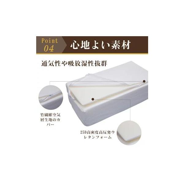 【抗菌カバー+25D高反発ウレタン】カバーは抗菌効果のある竹繊維素材を採用して、肌触りが良い、通気性に優れています。充填材は耐久性のある高反発25Dウレタンフォームを使用して、固すぎず柔らかすぎず、ちょうど良い硬さです。
