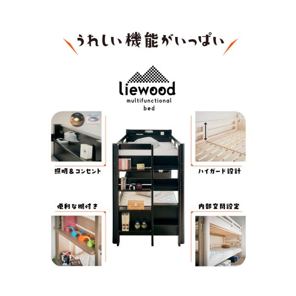 二段ベッド 宮棚照明付き リーウッド 高耐荷重 パイン無垢材エコ塗装 耐震 2段ベット 子供 業務 大人用 爆買