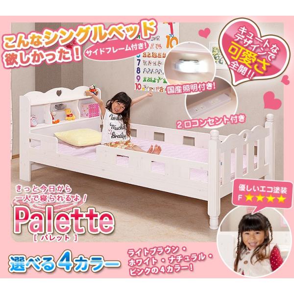 シングルベッド S 宮棚照明付き パレット パイン無垢材エコ塗装 ベット 子供 業務 大人用 爆買