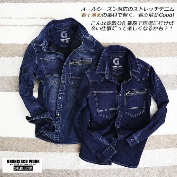 デニムシャツ ストレッチ デニム 作業服 シャツ グランシスコ GC-A704 オールシーズン タカヤ商事 ストレッチ メンズ 作業服 作業着 即日発送