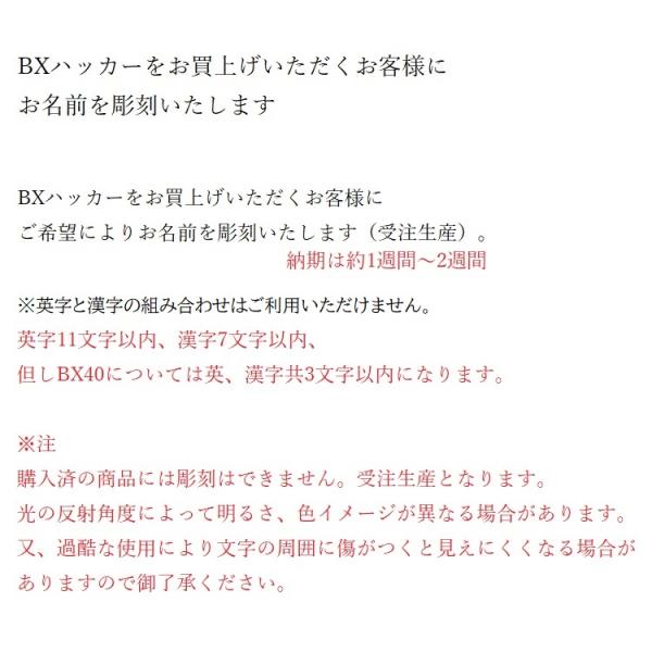 ・BXハッカーをお買上げいただくお客様にご希望によりお名前を彫刻いたします。(受注生産)