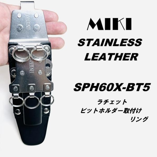 【新型ホルダー】三貴 MIKI 工具ホルダー工具差し SPH着脱タイプ SPH60X-BT5 ラチェット ビットホルダー5連取付けリング付き ステンレス 牛表革使用