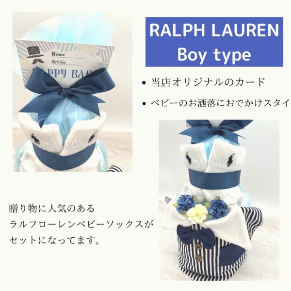おむつケーキ ラルフローレン 男の子 女の子 出産祝い Ralph Lauren おしゃれ ベビーソックス お出かけスタイ おむつ 2段 パンパース S M
