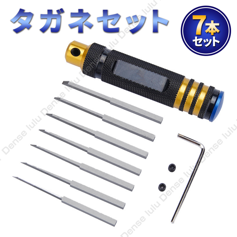 タガネ7本、ホルダー、六角レンチ、ネジ2つ、ケース付き