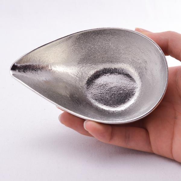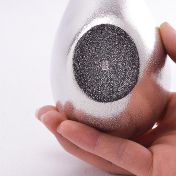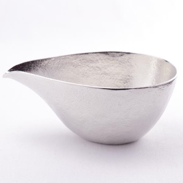 能作の酒器は熱伝導率に優れた錫を使用しているので、ヒンヤリ美味しいお酒を味わえます。こちらは「小サイズ」の片口 1個、ぐい呑 2個のセットです。こちらより一回り大きい大サイズの酒器セットもございます。