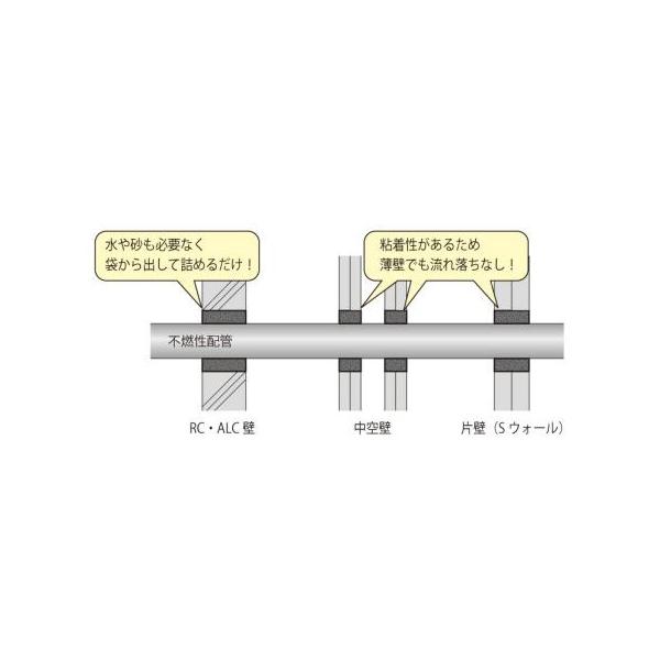 不燃性配管の防火区画貫通部の埋め戻し処理材に最適です。