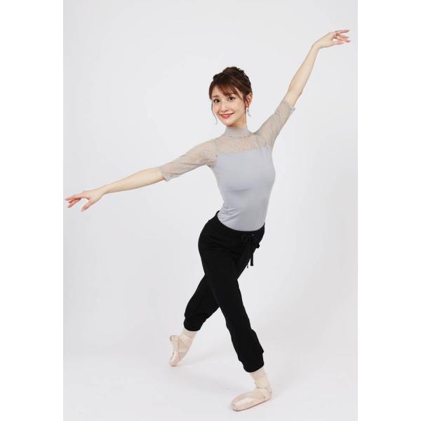 バレエ 大人 エレガンスフラワーレース・ハイネック5分袖レオトップ レッスン 半袖 日本製