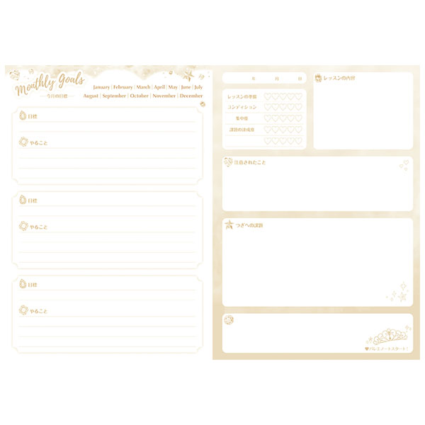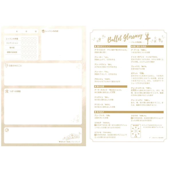 目標が書ける「Monthly goal」/パの名前一覧「Ballet glossary」