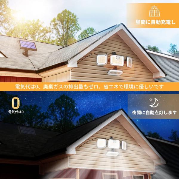 センサーライト ソーラーライト 屋外【333LED/人感センサー/4灯式/IP65防水/5M延長コード】 2400mAh大容量バッテリー ジ リモコン付き 日本語説明書付き