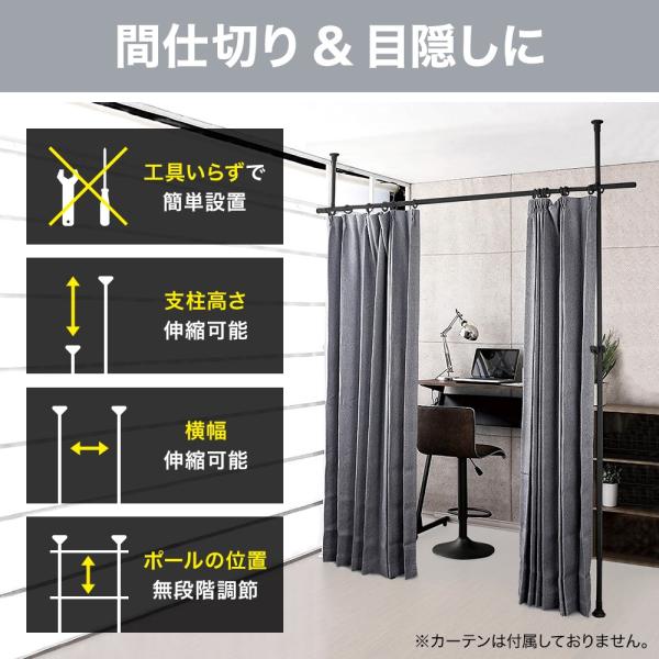 ハンガーラック 頑丈 突っ張り棒 カーテンポール カーテンレール つっぱり棒 目隠し 間仕切り パーテーション 突っ張り 突っ張りラック
