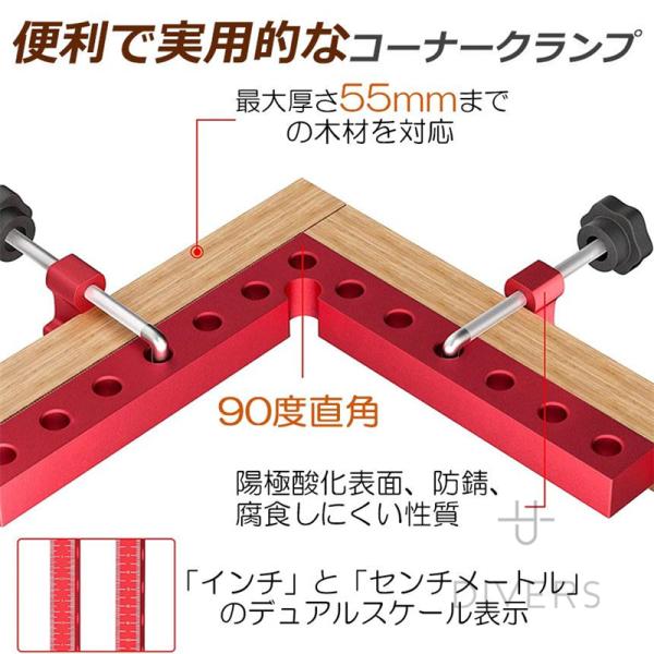 コーナークランプ 木工 diy 工具 直角 90度 クランプ工具 アルミ合金製 直角 90度 最大固定幅55mm対応 調整可能 木工 溶接 DIY 日