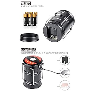 LEDランタン usb充電式 電池式 2in1給電方法 キャンプランタン フラッシュライト ポータブル テントライト 折り畳み式 携帯型 高輝度 マグネット式 懐中電灯 防水仕様 災害グッズ アウトドア SOS防災用品 応急 停電 登山 夜釣り ハイキング 1個入 (ブラック)