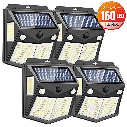 focondot 708 view 【2020年最新版】Focondot センサーライト ソーラーライト 160LED 2センサー 4面発光 人感センサー 屋外照明 防水 防犯ライト 300°照明範囲 自動点灯 屋外 庭 玄関 駐車場