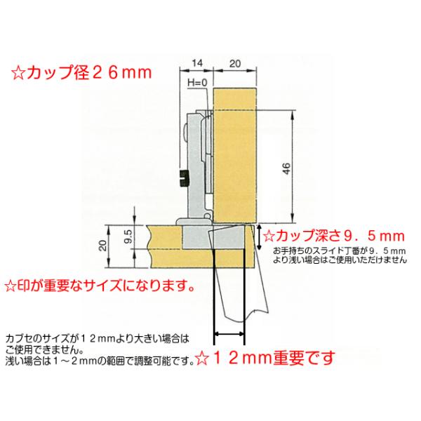 2.カップ深さ9.5mm(扉に開いている穴の深さです)