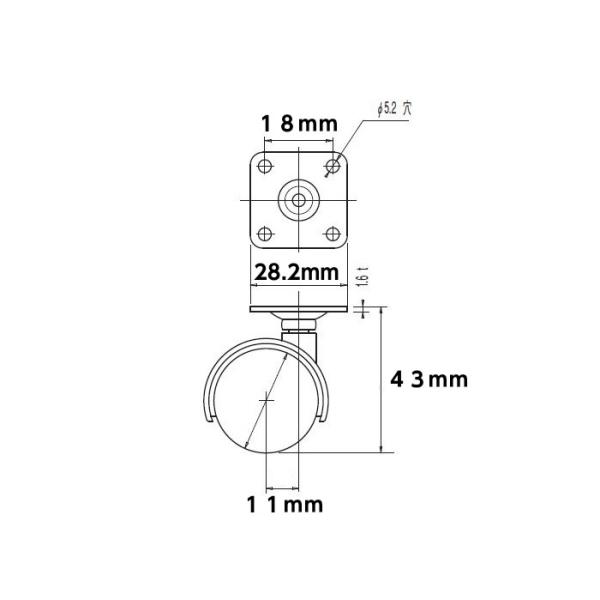 取り付け高さ43mm 幅33.5mm 車輪径30mm