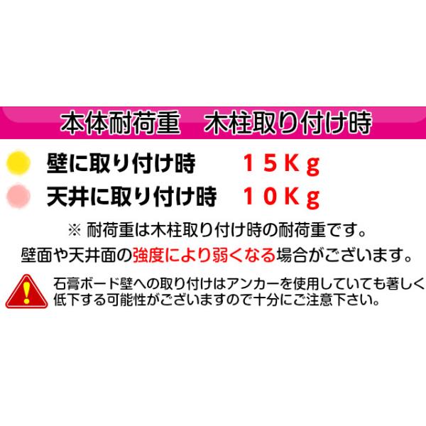 本体耐荷重・天井面使用時10Kgです。