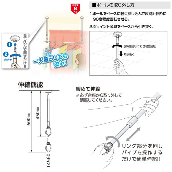 2本入 取り外し可能 伸縮 吊下げ型室内物干し金具