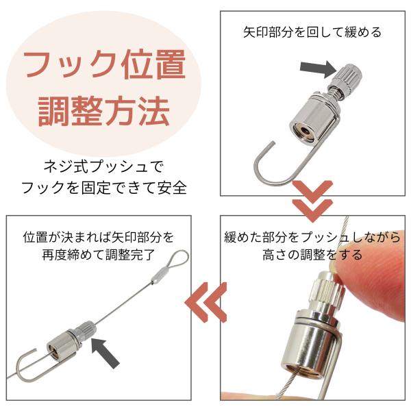 ピクチャーレール ワイヤー classico プチフック 50cm 自在 額吊金具 調整ワイヤーセット ピクチャーフック