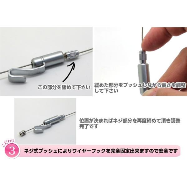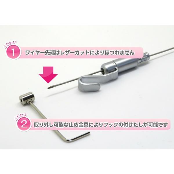 3.止め部分に取り外し可能な止め金具を使用しておりワイヤーフックの付け足しが可能です。