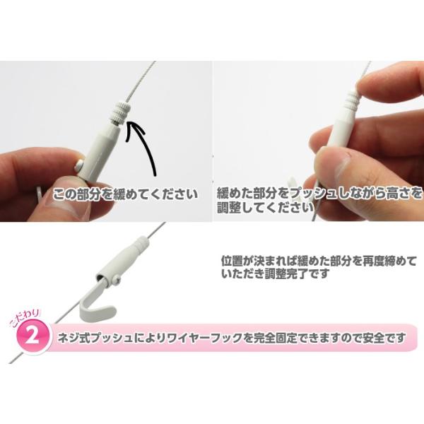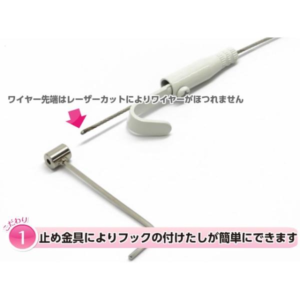 ピクチャーレール ワイヤー 1.0mm×30cm classico スリムフック ホワイト ステンレスワイヤー 自在 額吊金具 調整ワイヤーセット ピクチャーフック