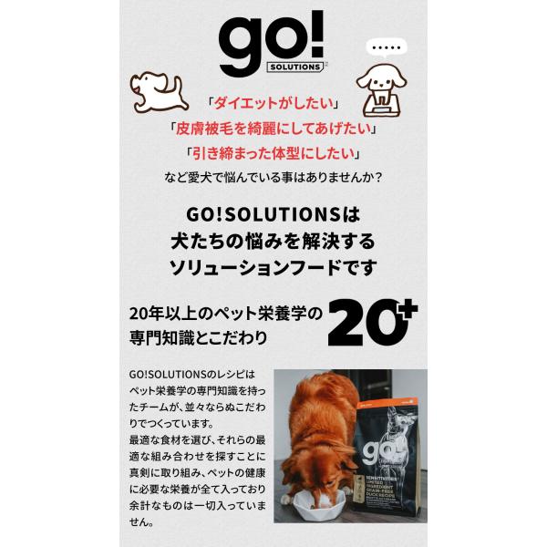 犬/ドッグ/フード/ドック/機能性成分/高たんぱく/高タンパク/低脂肪/低炭水化物/高栄養/オメガ脂肪酸/消化/お腹/腸/野菜/フルーツ/ハーブ/乳酸菌/成犬/アダルト/グレインフリー/穀物不使用/ゴーソリューションズ/GO!SOLUTIONS