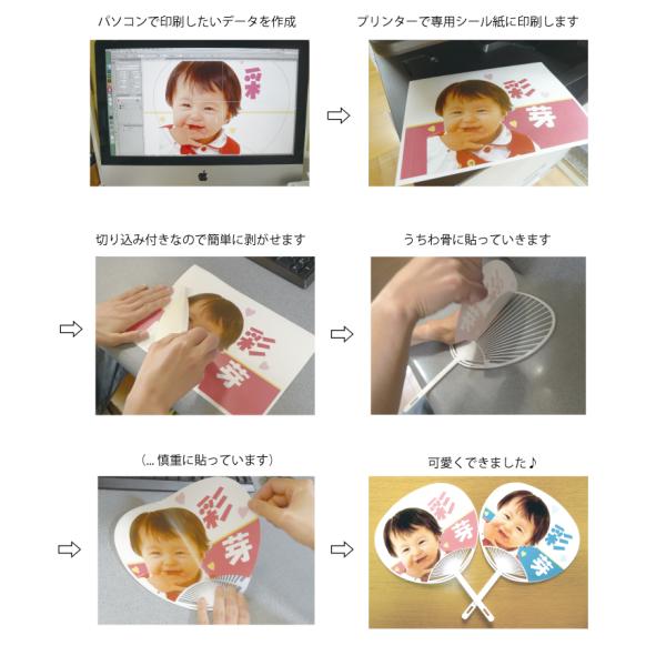●1セット内容:うちわ骨1本、シール紙2枚、試し刷り用紙(注文1件に適量)
