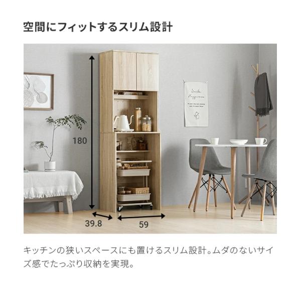 食器棚 スリム レンジボード キッチンボード 幅59cm レンジ台 キッチン 収納 収納棚 コンセント 一人暮らし