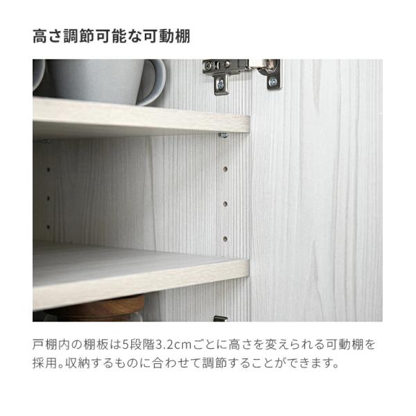 耐荷重:天板…約 14kg / 扉内棚板…約 12kg / オープン棚…約 16kg / 奥固定棚(オープン棚内)…約 3.5kg / 奥固定棚(下段)…約 5.5kg