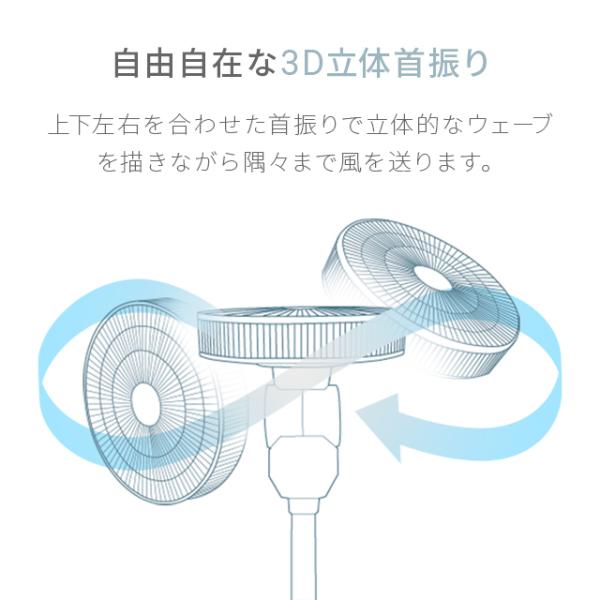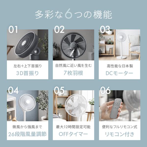 おすすめポイント:3D立体首振り機能、自然風に近い風を生み出す7枚羽根、日本メーカー製DCモーター採用