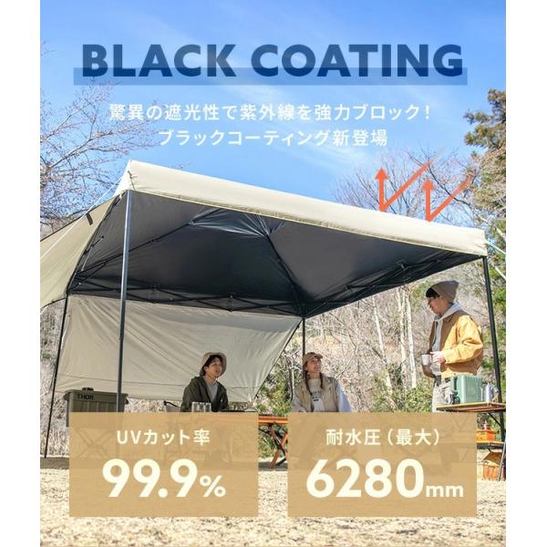 タープテント 2.5m ワンタッチタープテント ブラックコーティング 簡単 おしゃれ 大型 軽量 日除け UVカット 防水 アウトドア 3ヵ月保証