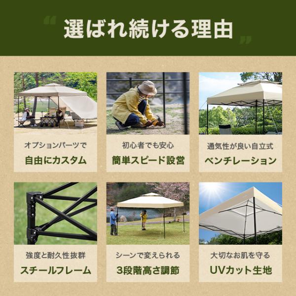 タープテント 3m 補強フレーム付き ワンタッチタープテント テント本体 軽量 日よけ 簡単 おしゃれ UVカット 防水 アウトドア ソロキャンプ 3ヵ月保証