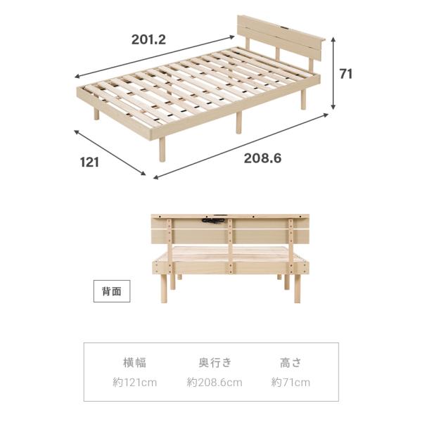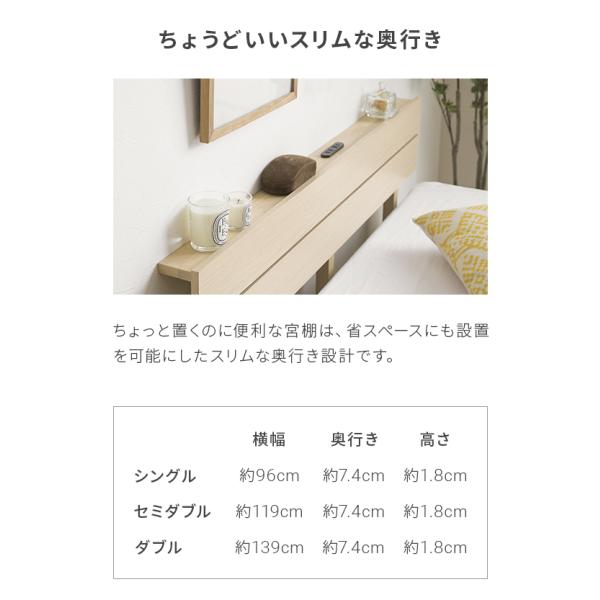 ベッド 宮付き すのこベッド セミダブル 2口コンセント付き 無垢材 宮棚 ヘッドボード ベッドフレーム すのこ セミダブルベッド 送料無料