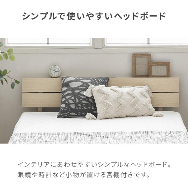 おすすめポイント:スマホスタンド&2口コンセント付きヘッドボード、風通しのよいすのこ板、レイアウト自由自在
