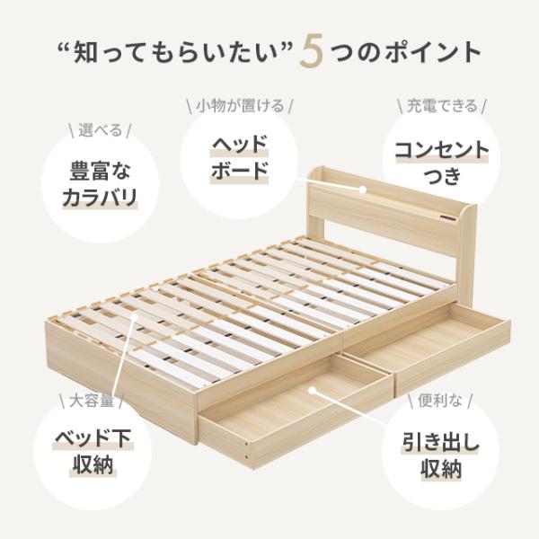 ベッド セミダブル ベッドフレーム コンセント付き 収納付き 引き出し付き ヘッドボード 木製ベッド 北欧 モダンデコ